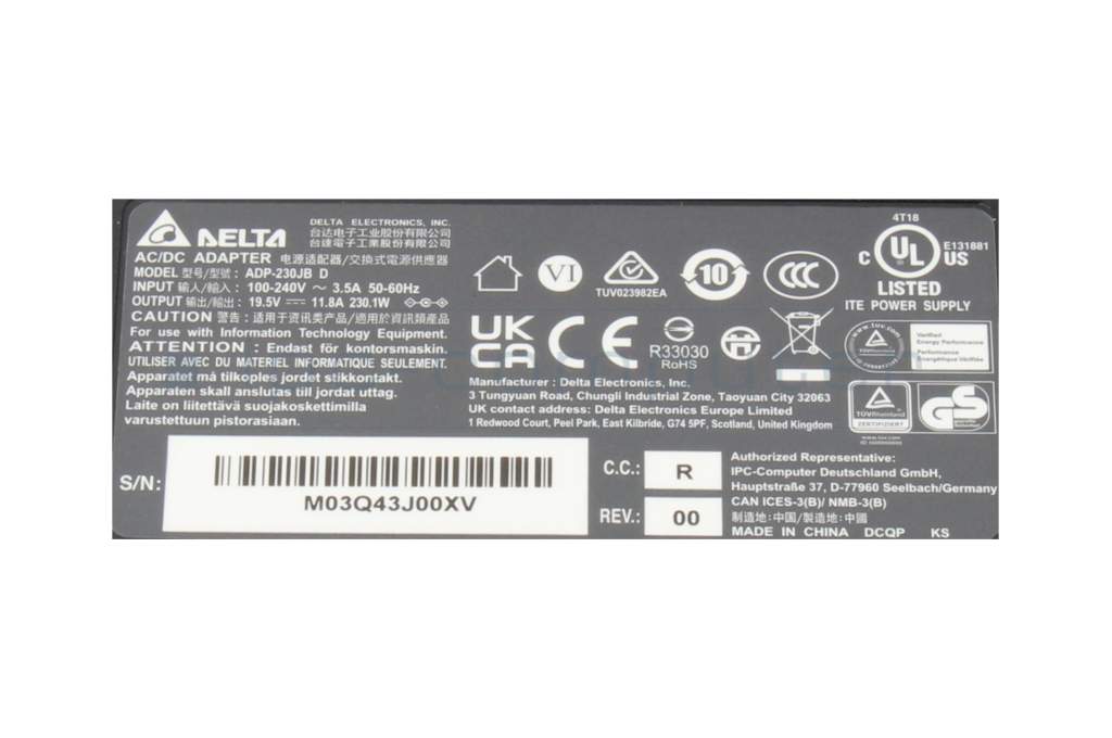 Acer Nitro 16 (AN16-51) cargador 230 vatios de Delta Electronics