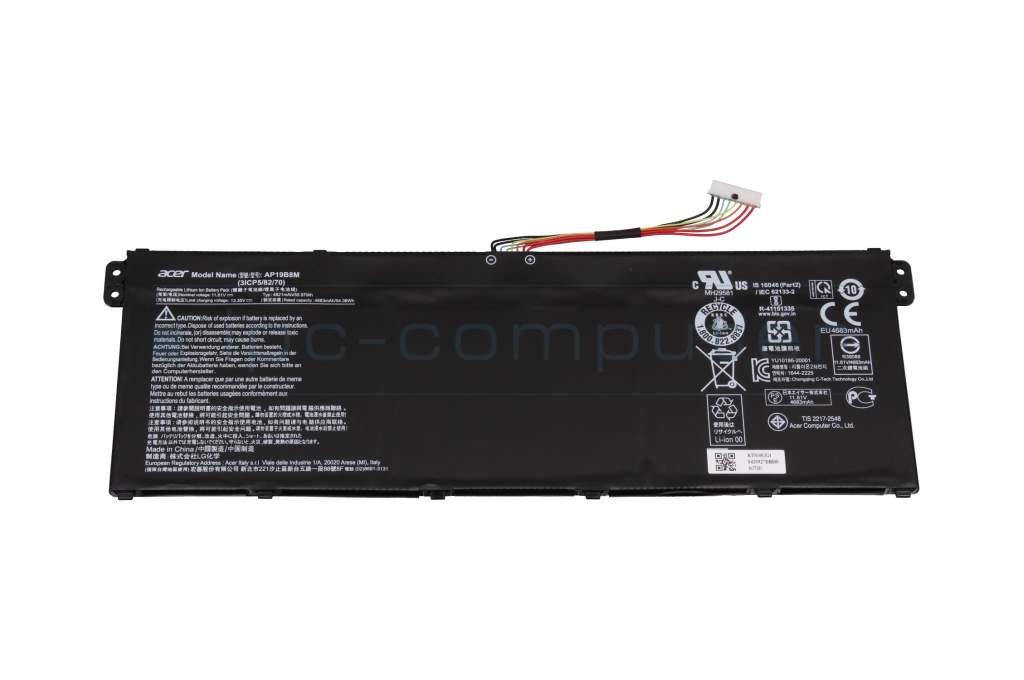 Tipo AP19B8M: se instalan diferentes baterías en la serie de modelos de portátiles SF314-43 / SF314-511 según el equipamiento del dispositivo. - Una designación de tipo diferente puede provocar problemas de compatibilidad, lo que significa que estas baterías pueden no ser reconocidas o cargadas en su dispositivo.
