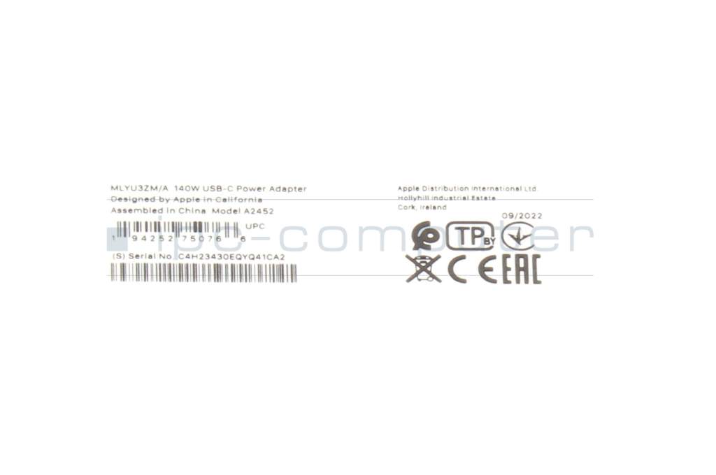 Apple A3241 EMC 8782 original GaN-cargador USB-C 140 vatios blanca