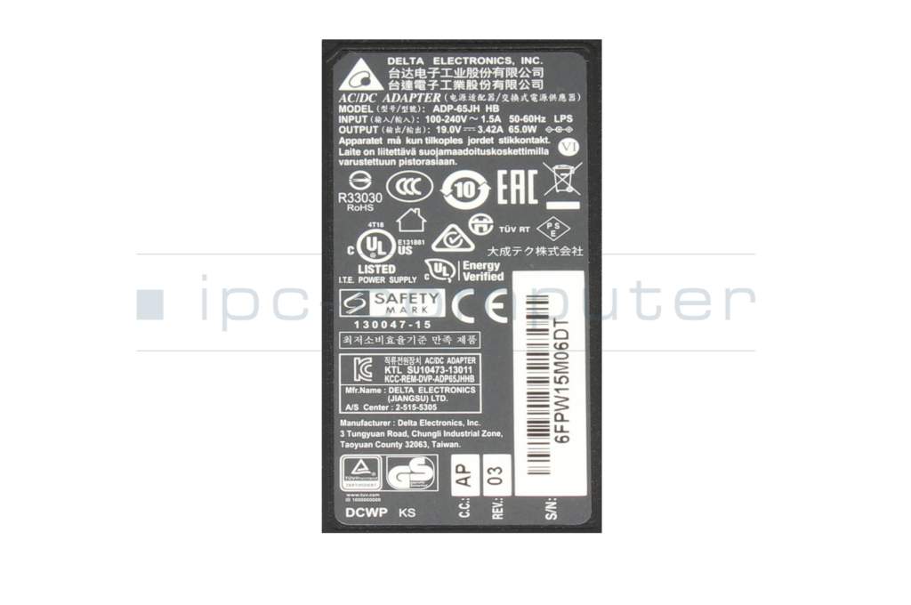 Asus R556LB cargador 65 vatios de Delta Electronics