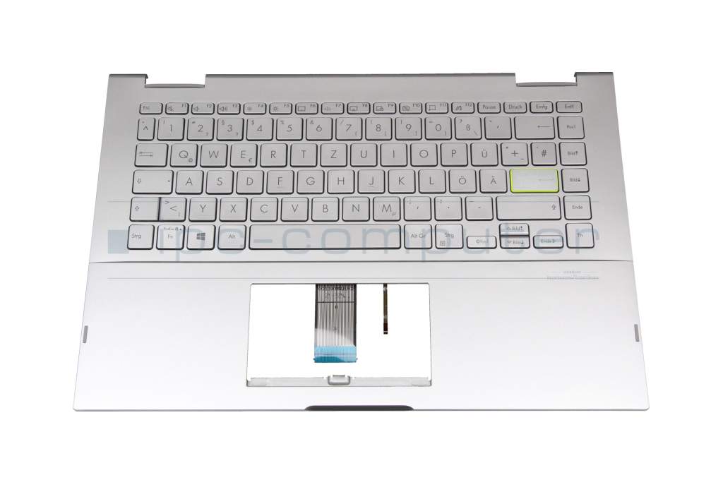 Teclado incl. topcase DE (alemán) plateado/plateado con retroiluminacion original para Asus VivoBook Flip 14 TP470EA