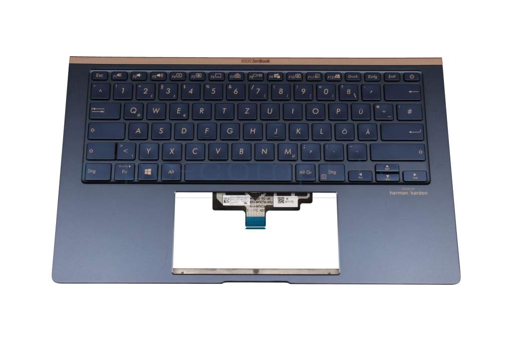 Teclado incl. topcase DE (alemán) azul/azul con retroiluminacion original para Asus ZenBook 14 UX434FA
