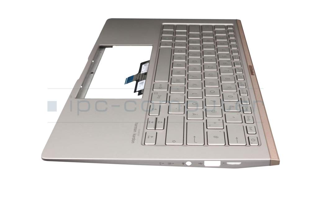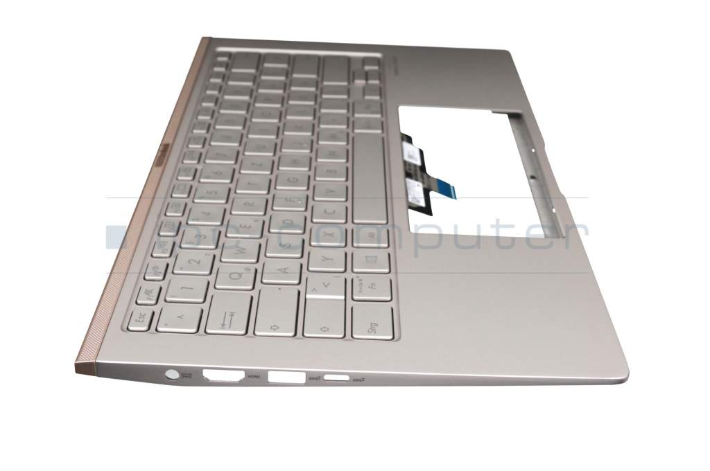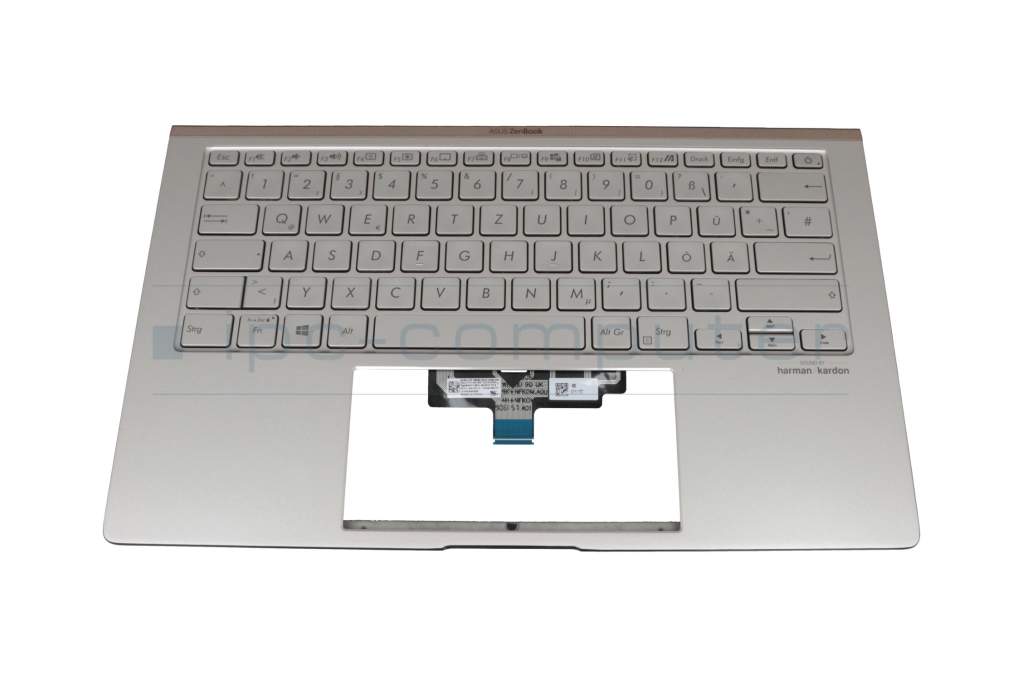 Teclado incl. topcase DE (alemán) plateado/plateado con retroiluminacion original para Asus ZenBook 14 UX434FLC