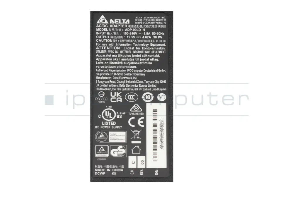 Clevo M570RU cargador 90 vatios de Delta Electronics