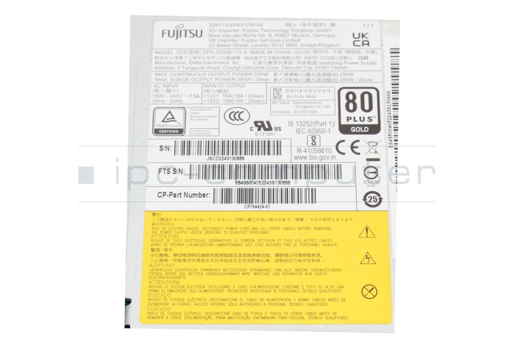 Fuente de alimentación del Ordenador de sobremesa 250 vatios original para Fujitsu Esprimo P6012