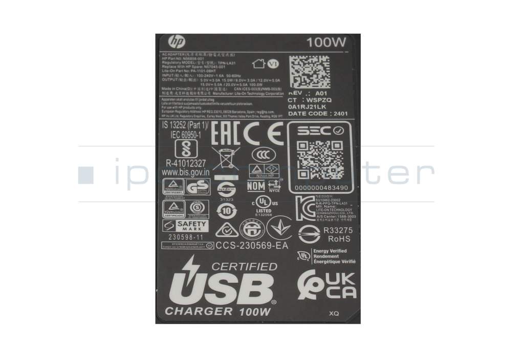 HP EliteBook 8 G1a 13 original cargador USB-C 100 vatios redondeado