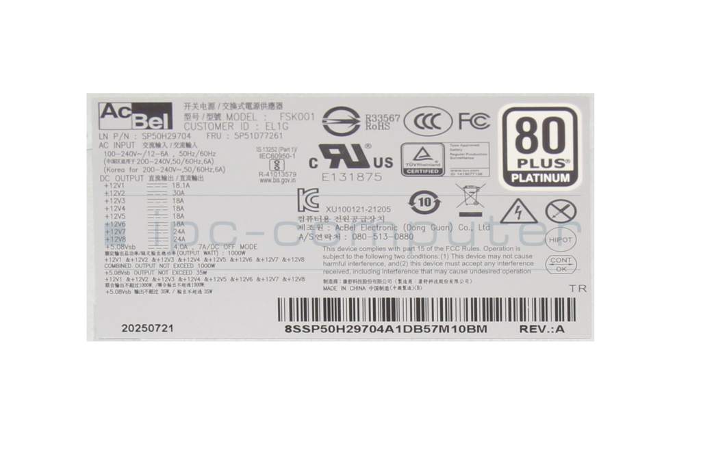 Fuente de alimentación del Ordenador de sobremesa 1000 vatios original para Lenovo Thinkstation P620 (30E0)