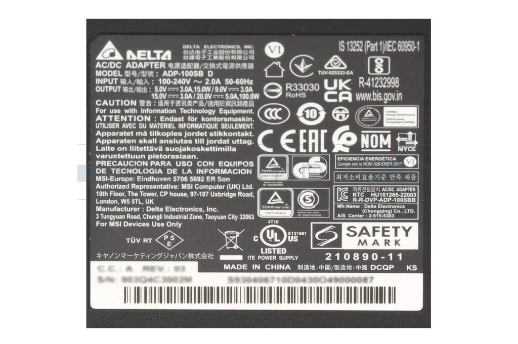 MSI Prestige 14 A10RB/A10RBS (MS-14C2) original cargador USB-C 100 vatios angular