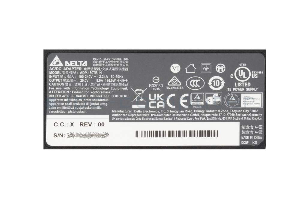 MSI Sword 17 A11UD/A11UE/A11SC (MS-17L2) cargador 180 vatios de Delta Electronics