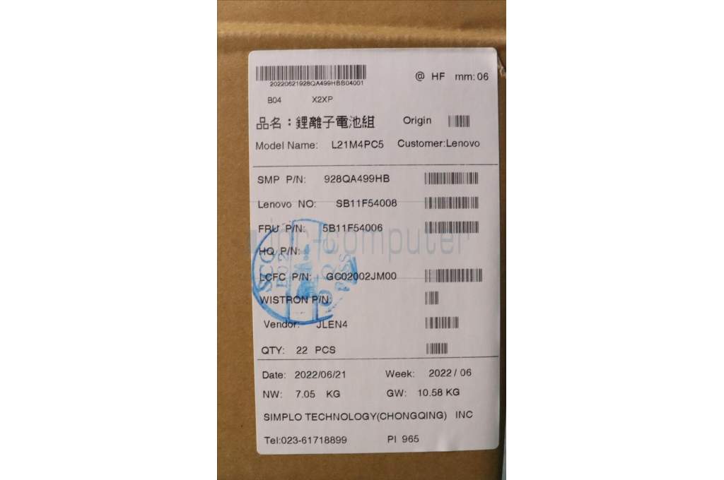 Lenovo 5B11F54006 BATTERY 4cell99.9Wh 15.52V L21M4PC5 SP/C