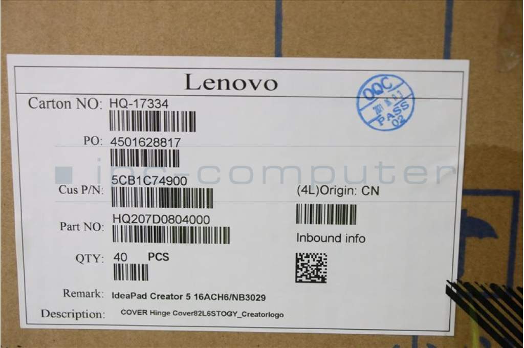 Lenovo 5CB1C74900 COVER Hinge Cover82L6STOGY_Creatorlogo