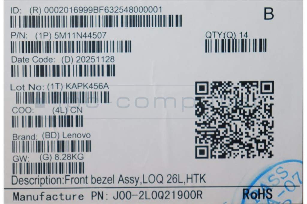 Lenovo 5M11N44507 MECH_ASM Front bezel Assy,LOQ 26L,HTK
