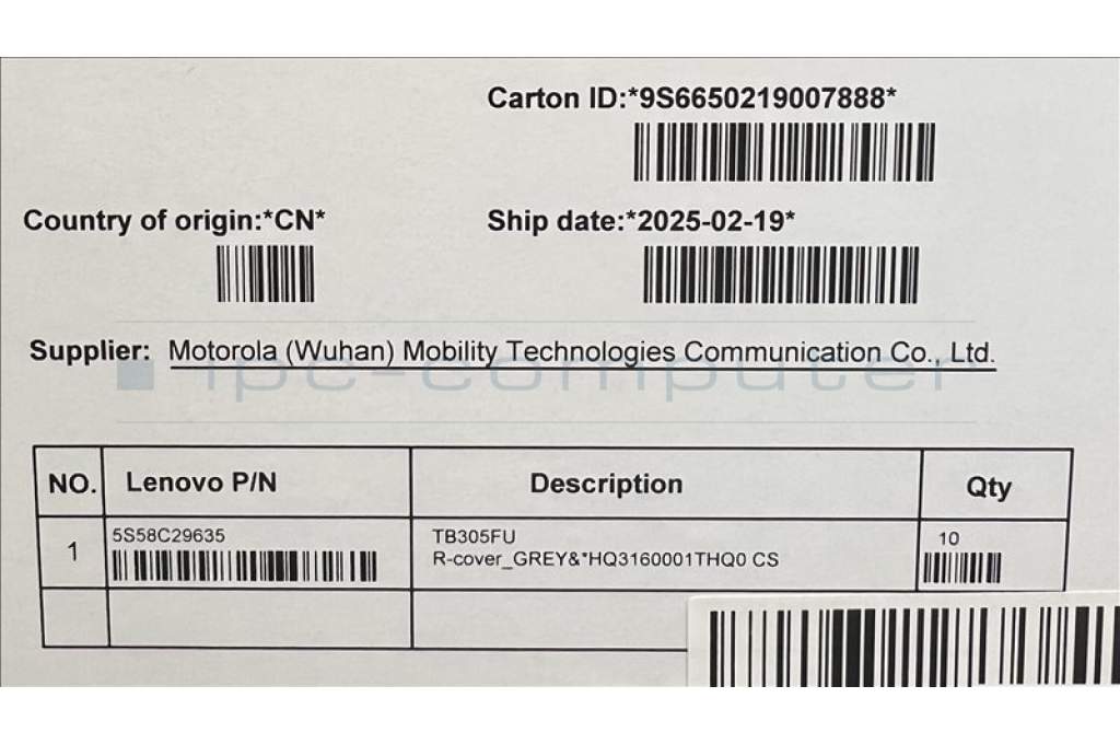 Lenovo 5S58C29635 TB305FU R-cover_GREY&*HQ3160001THQ0 CS