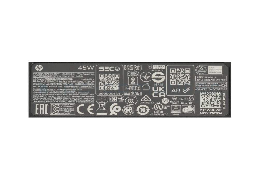 Alternativa para 1W9Y9AV cargador original HP 45 vatios normal