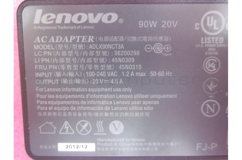 Lenovo 45N0310 AC ADAPTER TPG plug Chicony 90