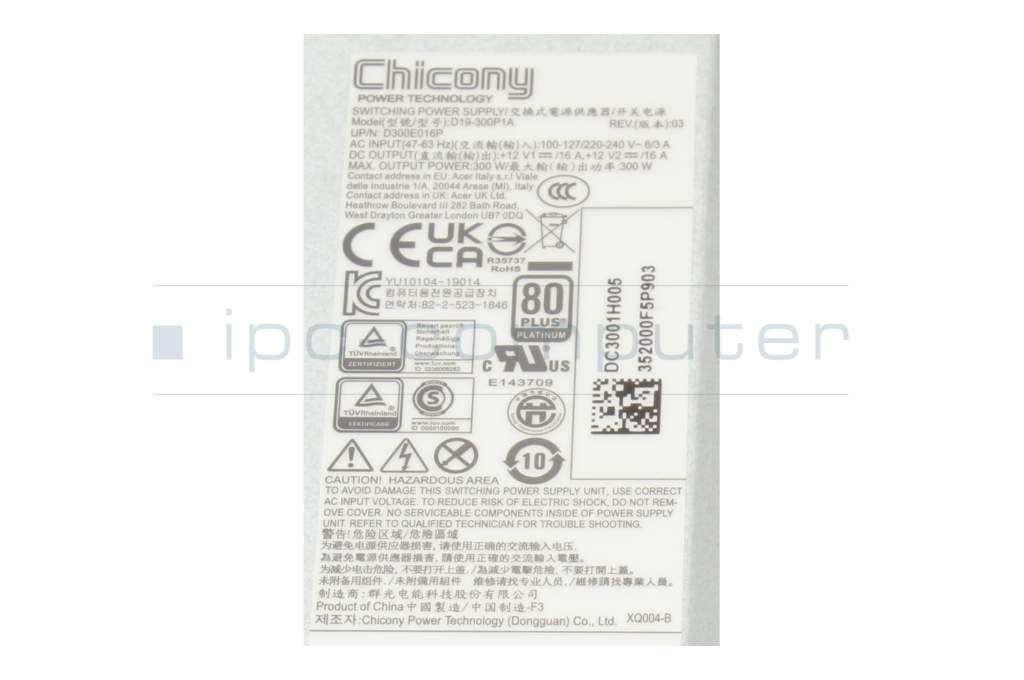 DC.3001B.00E original Acer fuente de alimentación del Ordenador de sobremesa 300 vatios