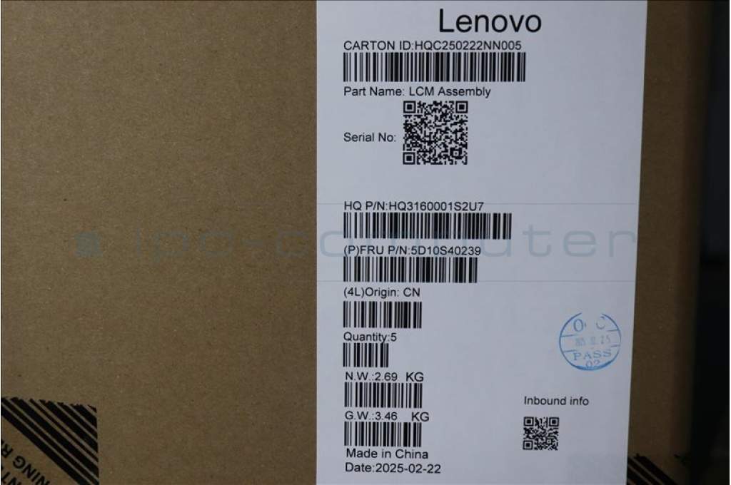Lenovo 5D10S40239 Lenovo LCD Module, 14", 2.8K, Touch, Glare, Anti-smudge, OLED, 500nit, 100%DCI-P3, Seashell, W/5M Camera