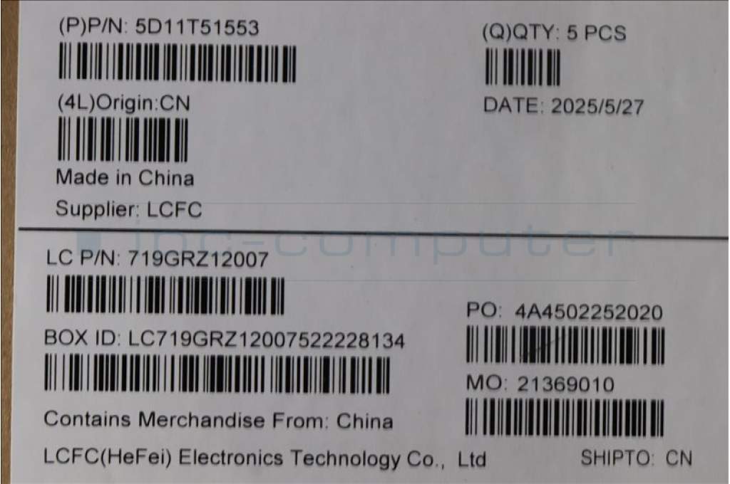 Lenovo 5D11T51553 DISPLAY FRU EDO EF10QBC64.C 15.1WQX FCC