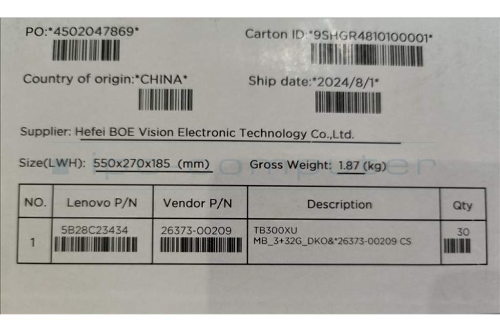 Lenovo 5B28C23434 TB300XU MB_3+32G_DKO&*26373-00209 CS