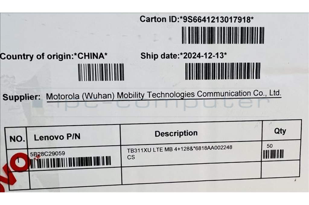 Lenovo 5B28C29059 TB311XU LTE MB 4+128&*6818AA002248 CS