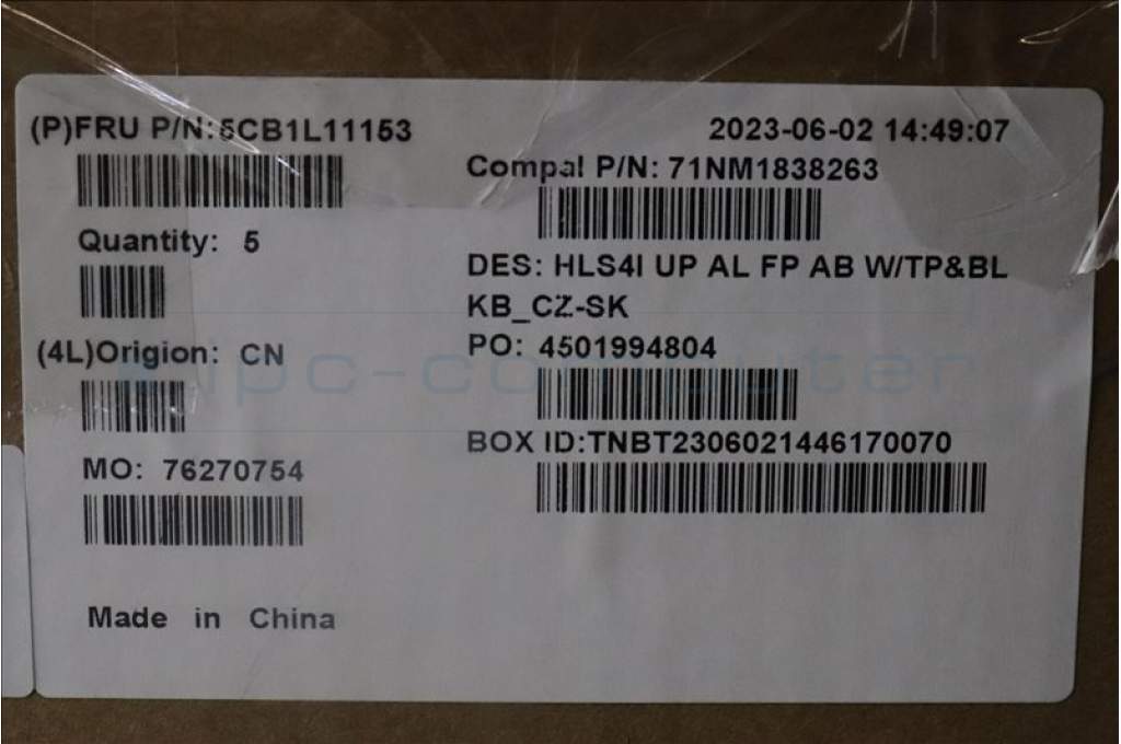 Lenovo 5CB1L11153 C-Cover with keyboard, Czech Slovakian, Abyss Blue, Backlight, FingerPrint, UK