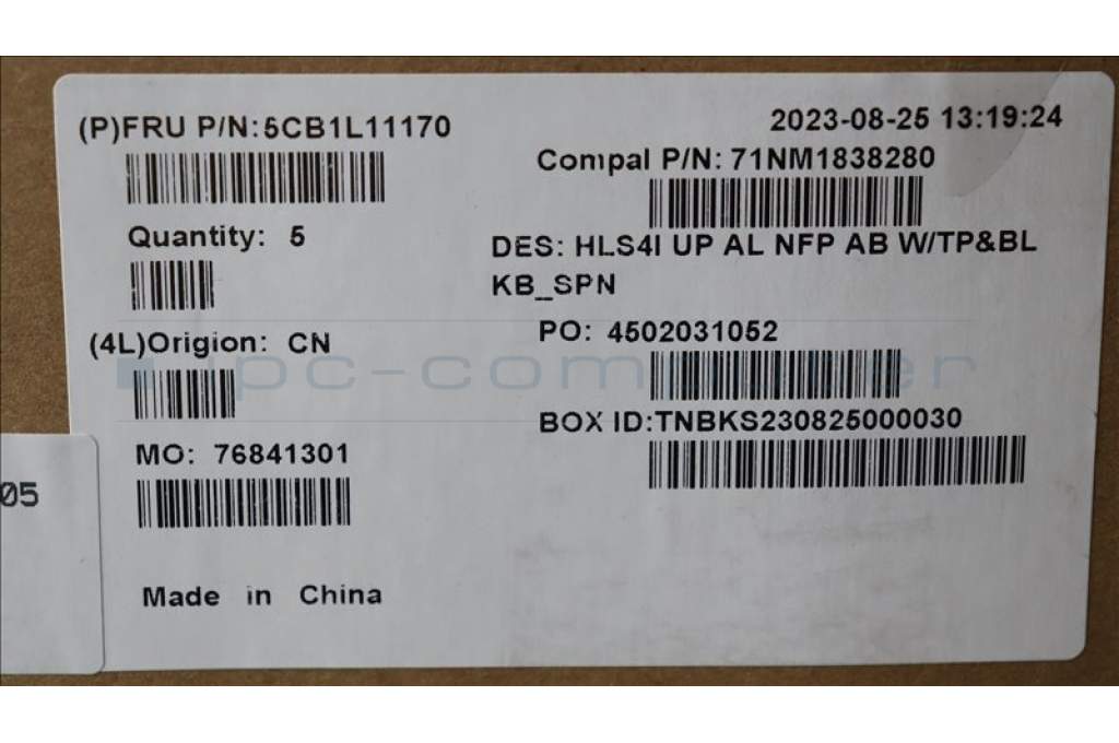 Lenovo 5CB1L11170 COVER UpperCase_SPA C82XD NFP AB BL AL