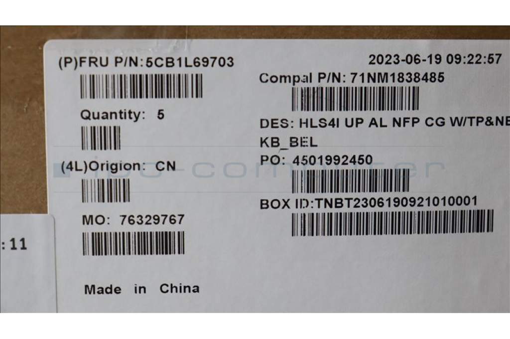 Lenovo 5CB1L69703 C-Abdeckung mit Tastatur, Belgisch, wolkengrau, Ohne Hintergrundbeleuchtung, Ohne Fingerabdruck, GB