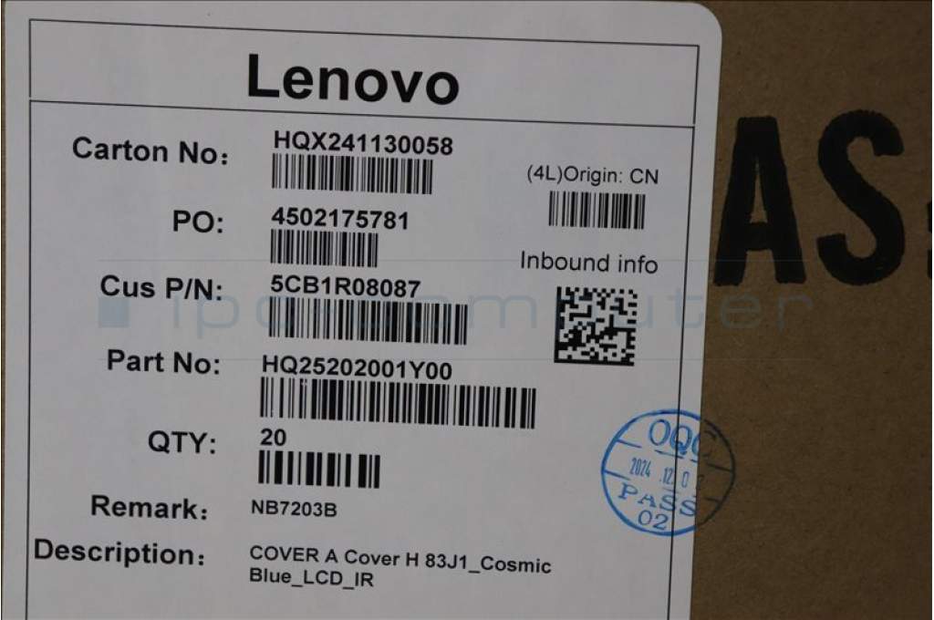 Lenovo 5CB1R08087 A-Cover, 83J1, Cosmic Blue, LCD_IR