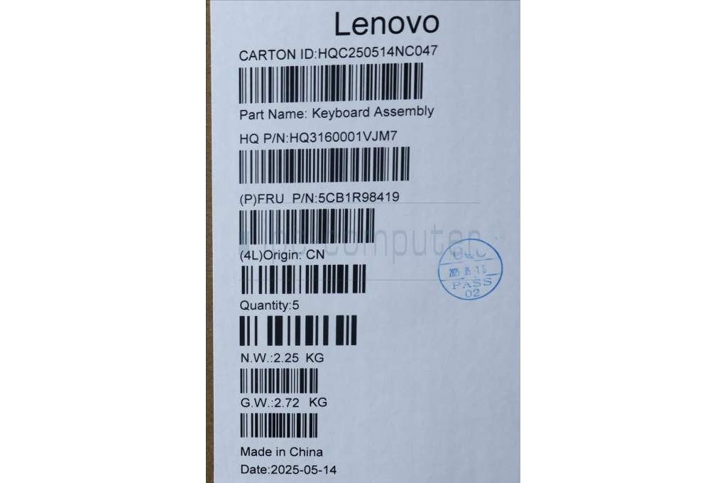 Lenovo 5CB1R98419 C-Cover with keyboard, Italian, Seashell, FingerPrint, Puresight Logo, UK