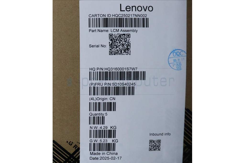 Lenovo 5D10S40245 Lenovo LCD Module, 16", WUXGA, Touch, Glare, Anti-smudge, IPS, 300nit, 45%NTSC, Luna Grey, W/FHD+IR Camera