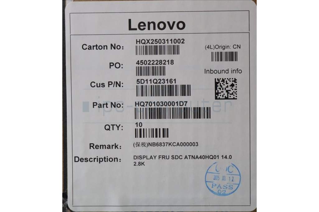 Lenovo 5D11Q23161 Lenovo DISPLAY, 14", 2.8K, Non_Touch, Glare, OLED, 500nit, 100%DCI-P3