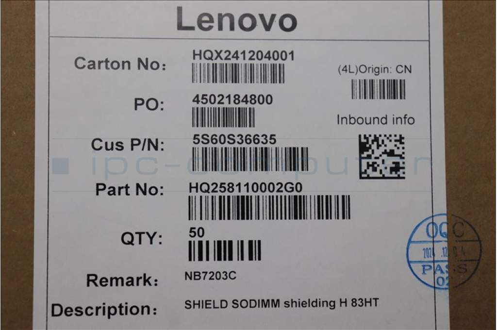 Lenovo 5S60S36635 SODIMM shielding H 83HT