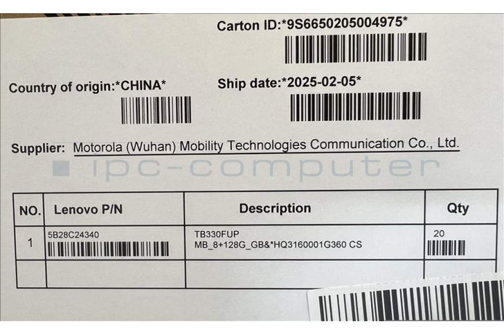 Lenovo 5B28C24340 TB330FUP MB_8+128G_GB&*HQ3160001G360 CS