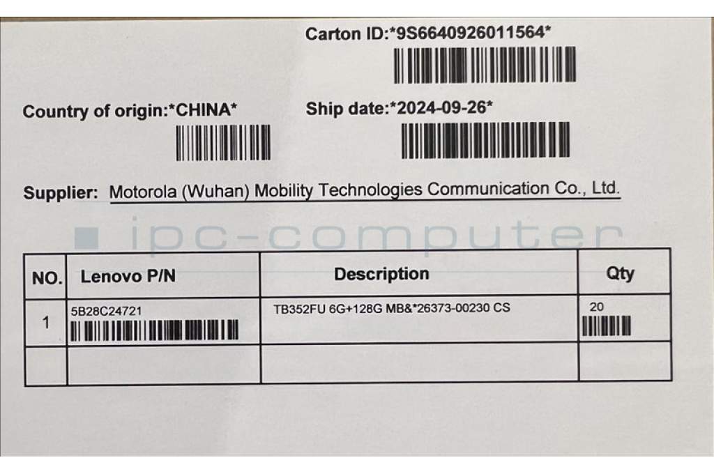Lenovo 5B28C24721 TB352FU 6G+128G MB&*26373-00230 CS