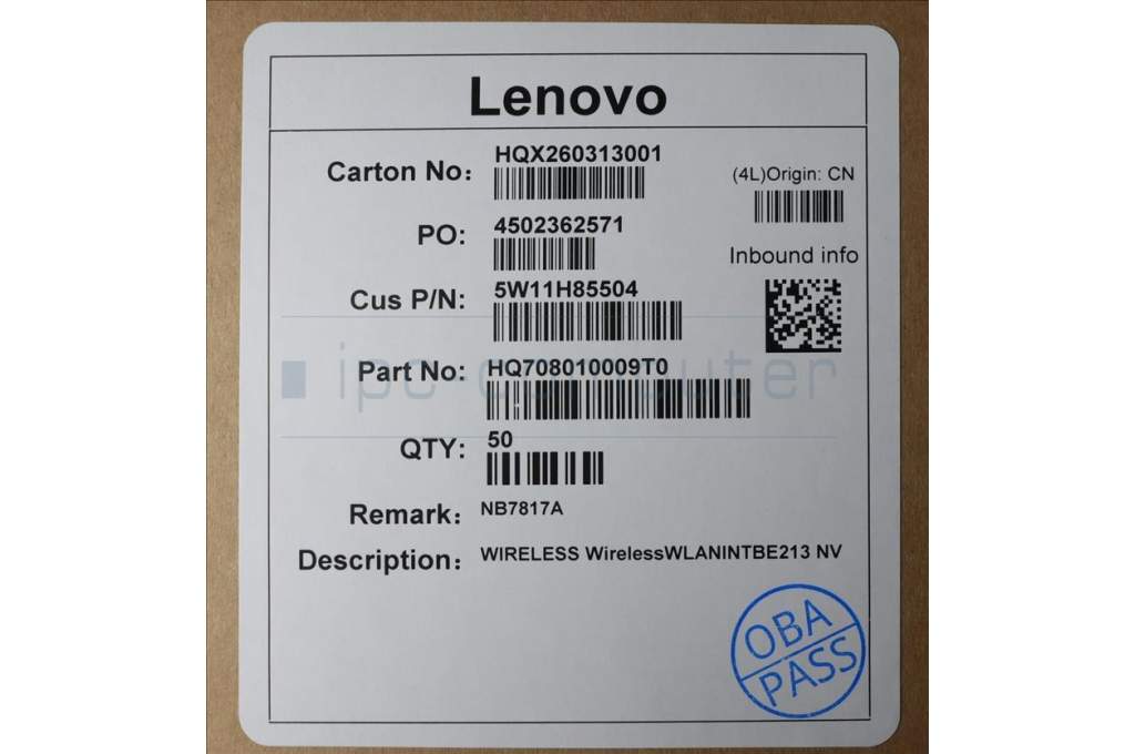 Lenovo 5W11H85504 WIRELESS Wireless,WLAN,INT,BE213 NV