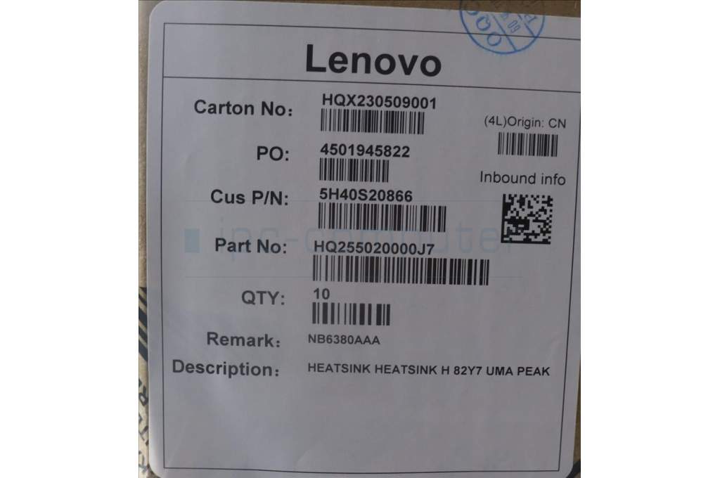 Lenovo 5H40S20866 HEATSINK HEATSINK H 82Y7 UMA PEAK