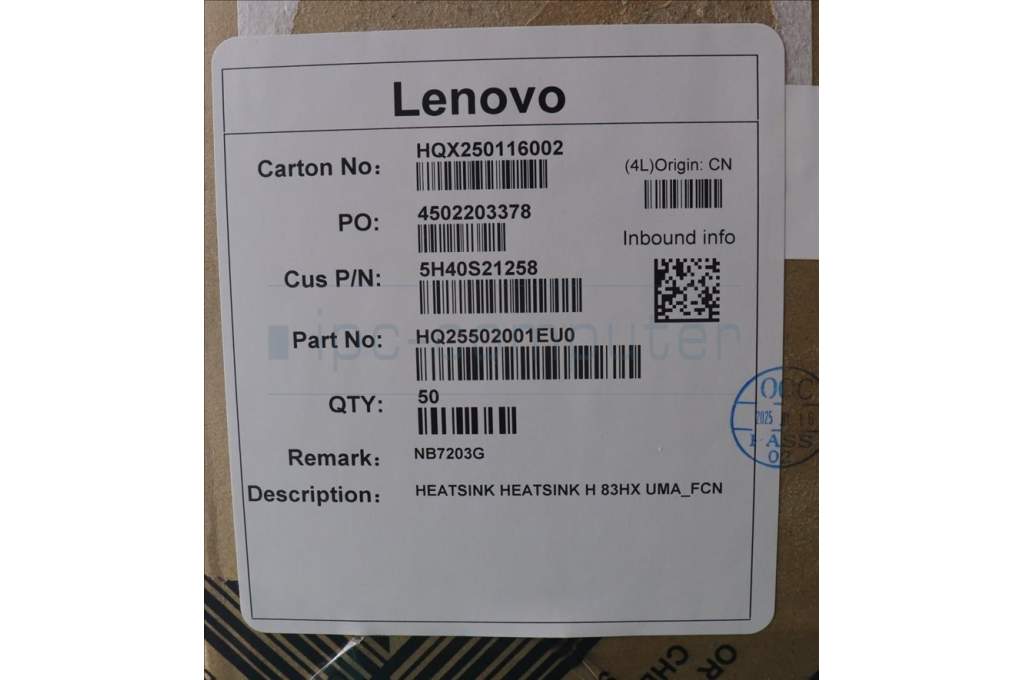 Lenovo 5H40S21258 HEATSINK HEATSINK H 83HX UMA_FCN