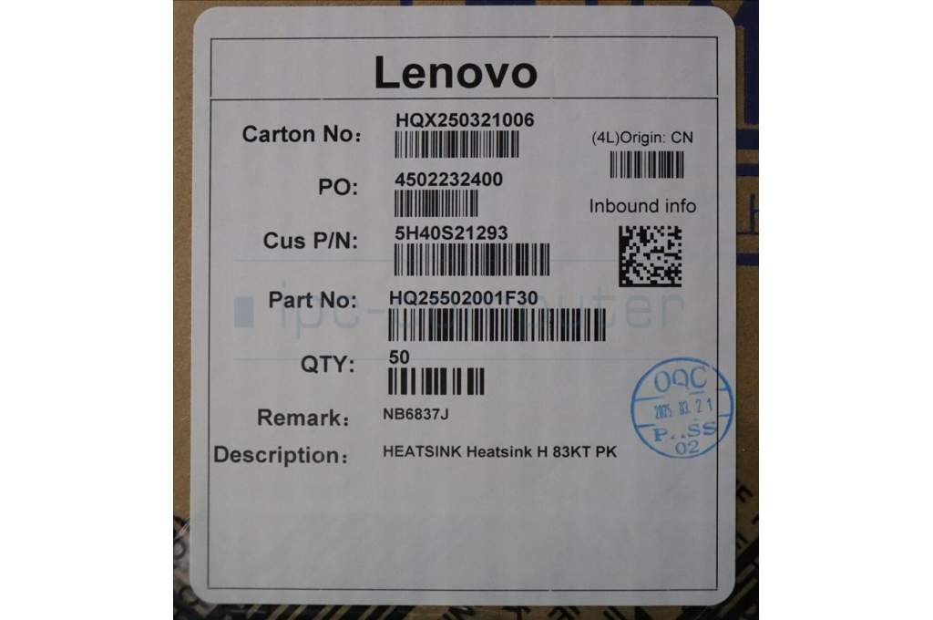 Lenovo 5H40S21293 HEATSINK Heatsink H 83KT PK