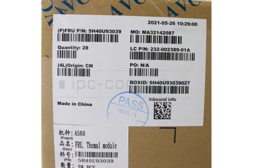 Lenovo 5H40U93039 HEATSINK A560 IRKL 27 DIS TM,AVC