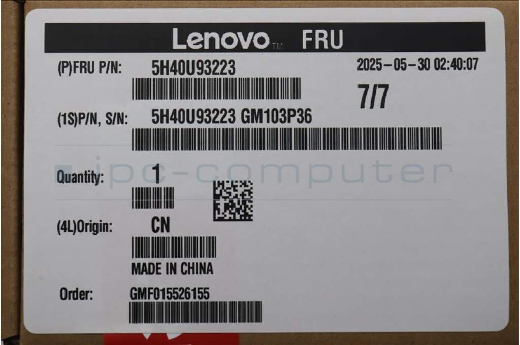 Lenovo 5H40U93223 HEATSINK FRU TinkKM G6 3rd ssd TSL HS