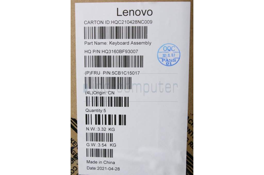 Lenovo 5CB1C15017 COVER Upper Case ASM_EURO ENG H 82CY IG