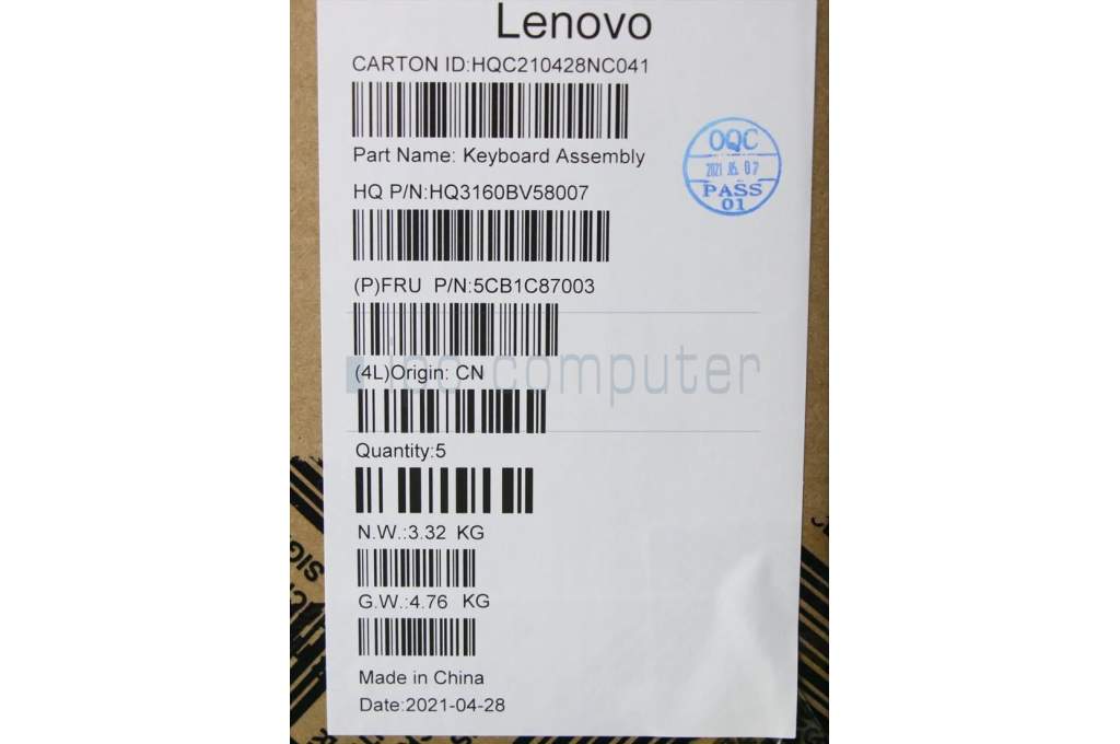 Lenovo 5CB1C87003 COVER Upper Case ASM_NORDIC H82L9CLO