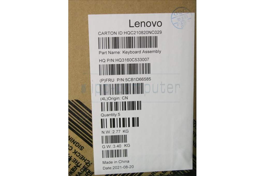 Lenovo 5CB1D66585 COVER Upper Case ASM_EURO ENG_H20WJ SG
