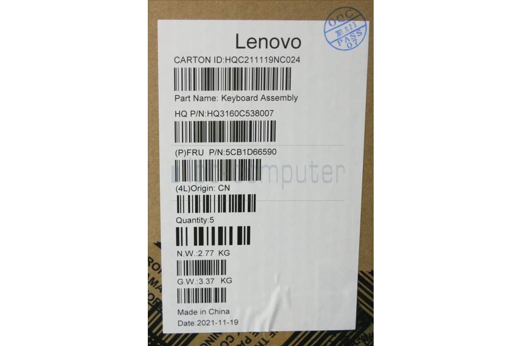 Lenovo 5CB1D66590 COVER Upper Case ASM_BEL_H20WJ SG