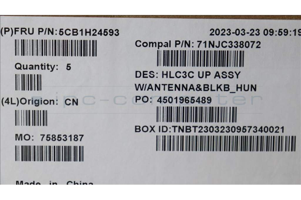 Lenovo 5CB1H24593 COVER Upper Case ASM_HUN C 82UD BL