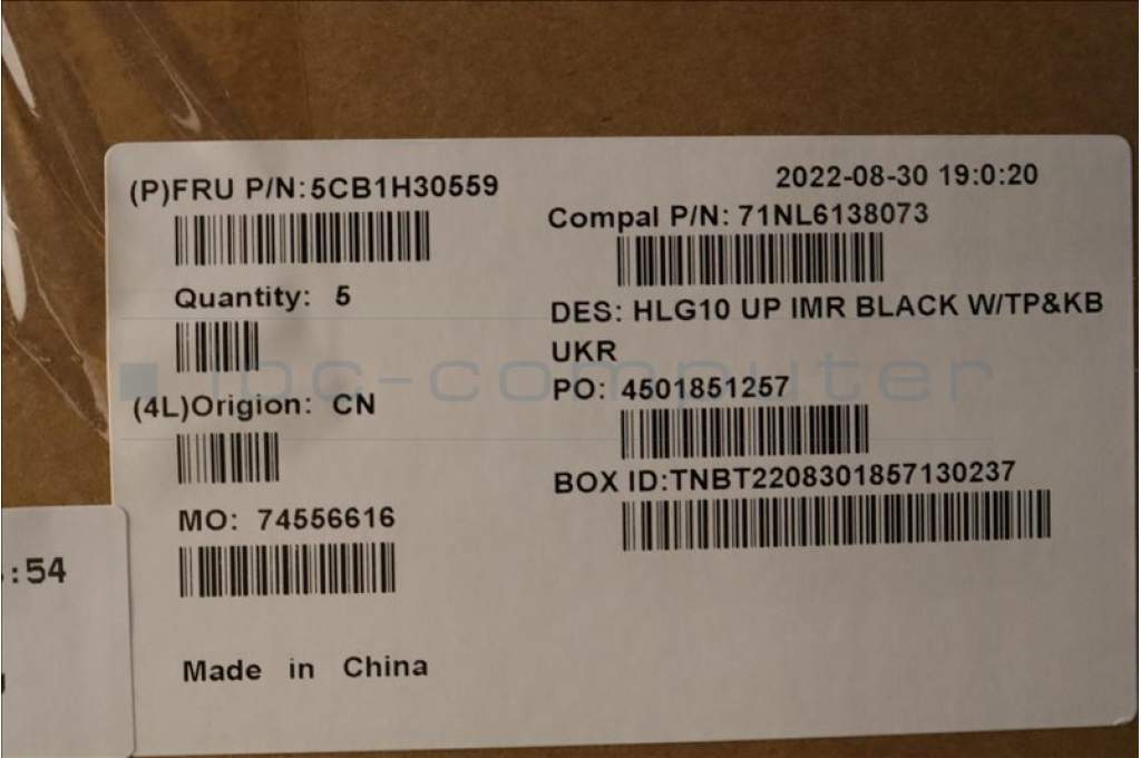 Lenovo 5CB1H30559 COVER Upper Case ASM_UKR C 82S9 BLA