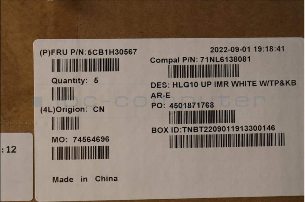 Lenovo 5CB1H30567 COVER Upper Case ASM_ARA C 82S9 WHT
