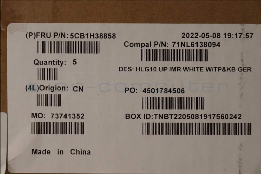 Lenovo 5CB1H38858 COVER Upper Case ASM_GER C 82S9 WHT