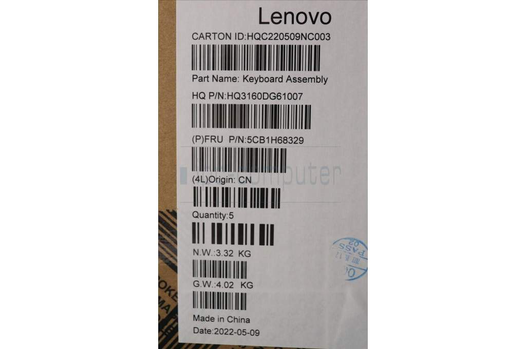 Lenovo 5CB1H68329 COVER Upper Case ASM_GERH21CXFPETARGY