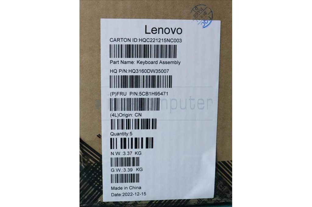 Lenovo 5CB1H95471 COVER Upper Case ASM_EURO ENG H STGY UMA